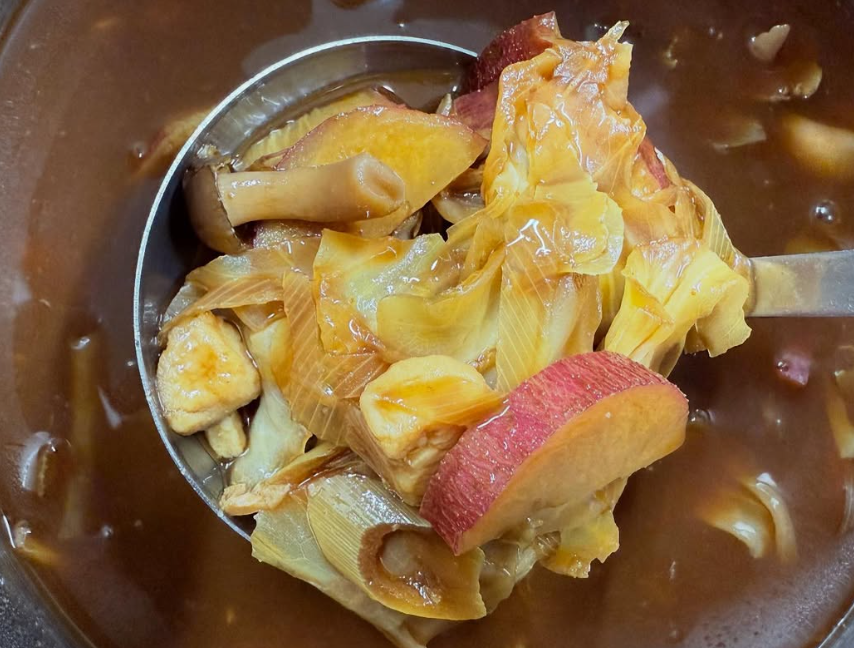 スープメニュー🍲 秋の味覚いっぱい 赤だし トップライン農園で収穫したさつまいもとキャベツとしめじをたっぷり入れました✨🍄🟫 さつまいも、キャベツ、しめじの3つは食物繊維が豊富💯それぞれ腸内環境や免疫力の改善をしてくれる栄養が詰まっています! どんどん寒さが増してきたので🧣🧤温かいスープが身体にし...