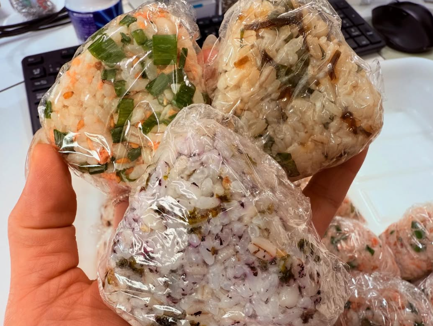 おにぎりメニュー🍙 大根の葉と鶏皮🍙 明太なめ茸🍙 塩昆布と天かす スープメニュー🍲 もち麦入り トマトスープ🍅 葉付きの大根をいただいたので、細かく刻んで甘辛く炒め、カリカリの鶏皮と混ぜました🍳 大根の葉やなめ茸や塩昆布はビタミンが多く含まれており現場作業で疲れた身体にもいいこと間違いなし!✨ ト...