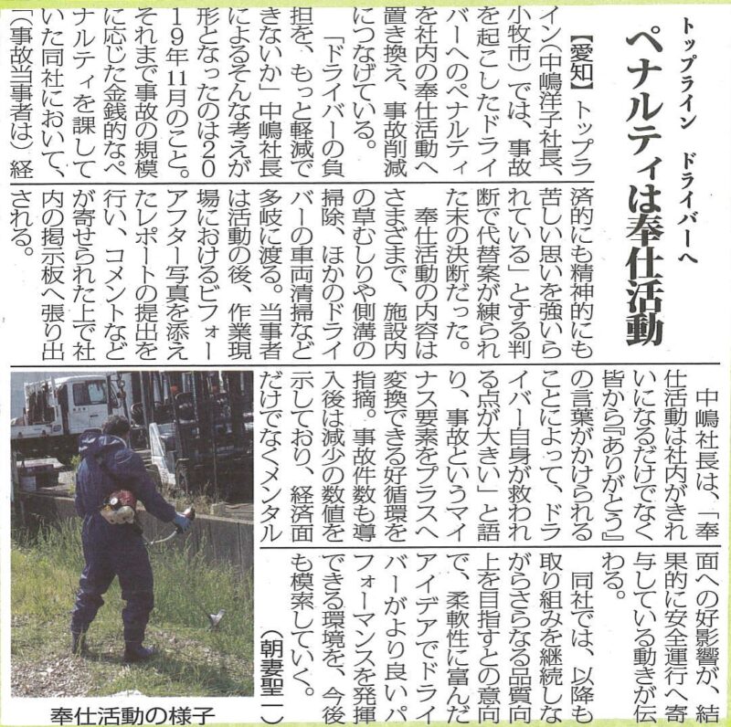 事故を起こした際の奉仕活動について掲載して頂きました。